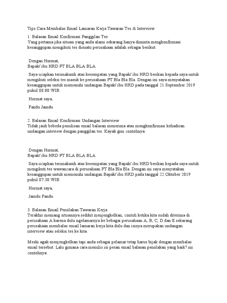 Contoh Cara Membalas Email Undangan Interview Pdf
